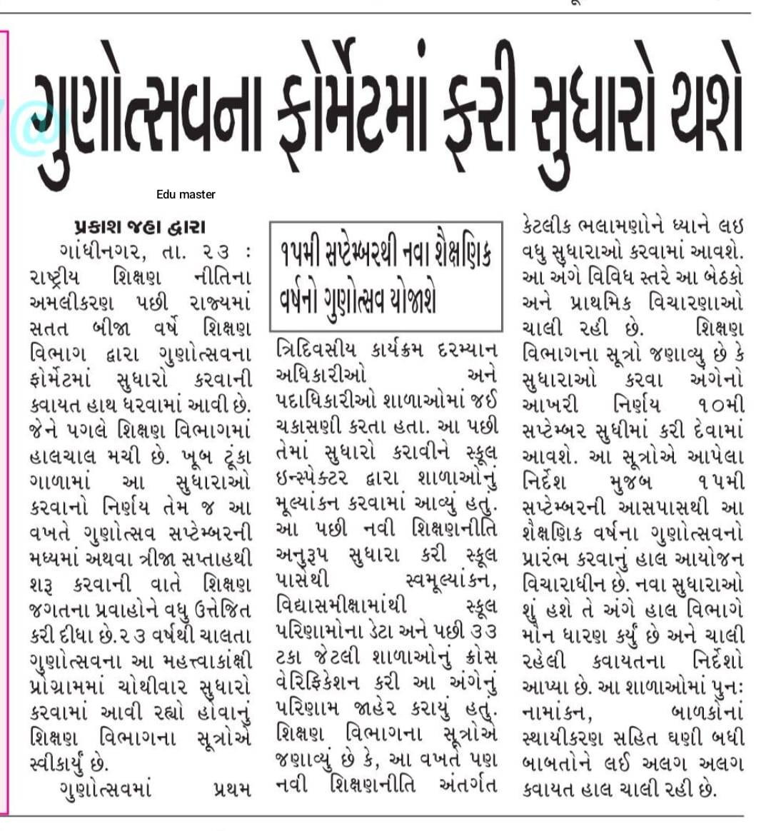 Education is the foundation of a strong society, and the Government of Gujarat has been continuously working to improve the quality of school education. One of the most important initiatives taken by the state government is Gunotsav. In 2025, Gunotsav Gujarat 2025 is being organized with the vision to evaluate, improve, and ensure quality education in government and grant-in-aid schools across the state.