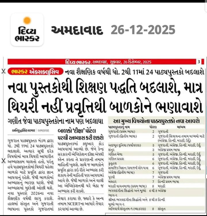 નવા શૈક્ષણિક વર્ષથી રાજ્યની શિક્ષણ વ્યવસ્થામાં એક મોટો અને ઐતિહાસિક બદલાવ થવા જઈ રહ્યો છે. ધોરણ 2 થી 11 સુધી કુલ 24 પાઠ્યપુસ્તકો બદલવાનો નિર્ણય લેવામાં આવ્યો છે. આ ફેરફાર માત્ર પાઠ્યપુસ્તકો પૂરતો સીમિત નથી, પરંતુ શિક્ષણ પદ્ધતિ, અભ્યાસક્રમ અને બાળકોના શીખવાના અભિગમમાં પણ મોટો પરિવર્તન લાવનાર છે.